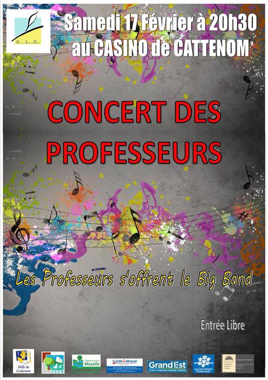 Le "Concert des Professeurs" est devenu au fil du temps une véritable institution. Tantôt en récital, tantôt en solistes avec le Big Band ou le Grand Orchestre d'Harmonie, ou encore en spectacle "délirant", les professeurs s'en donnent à coeur joie si bien que les élèves et le public en redemandent !