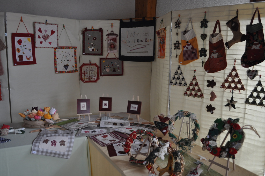 Notre atelier tissu des Mille et unes décos constitué d'adultes passionnés de couture organise régulièrement des expositions de Patchwork.