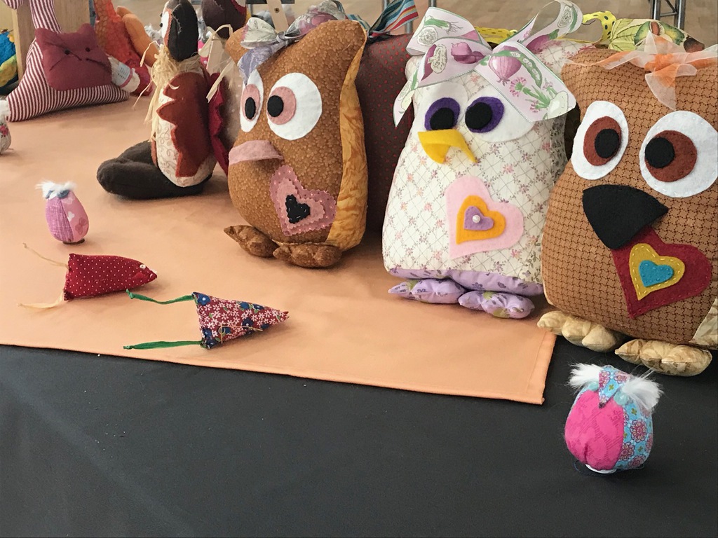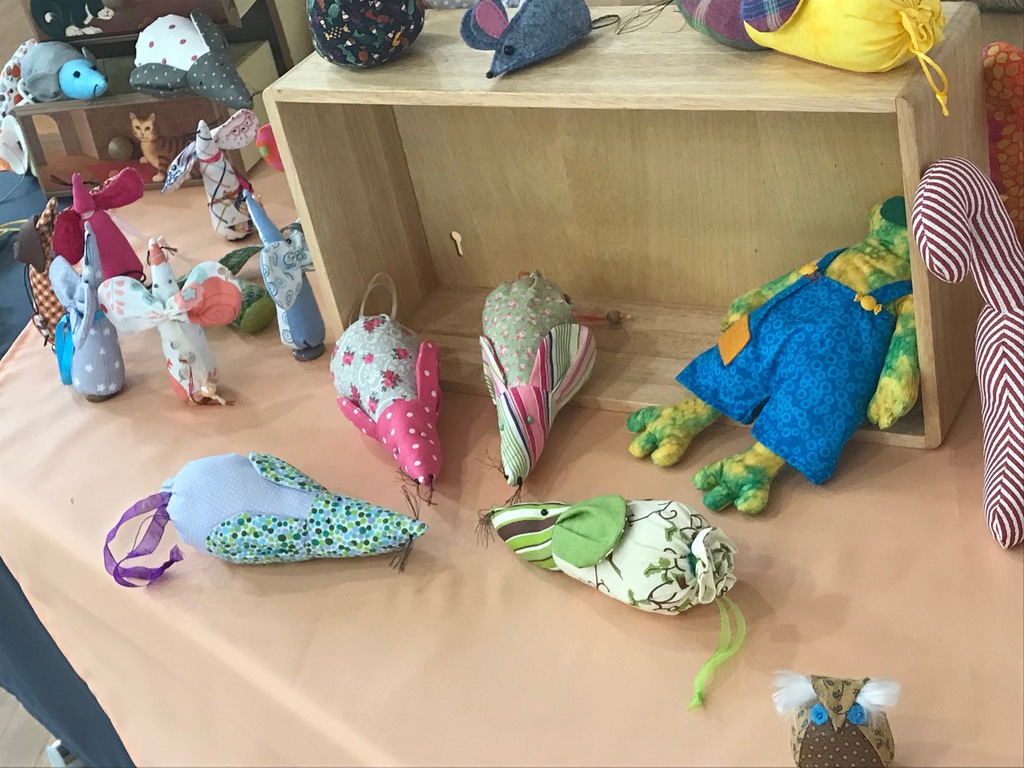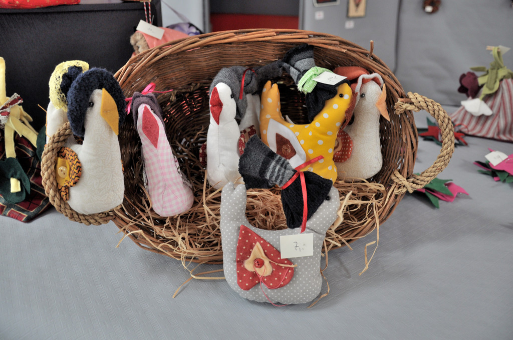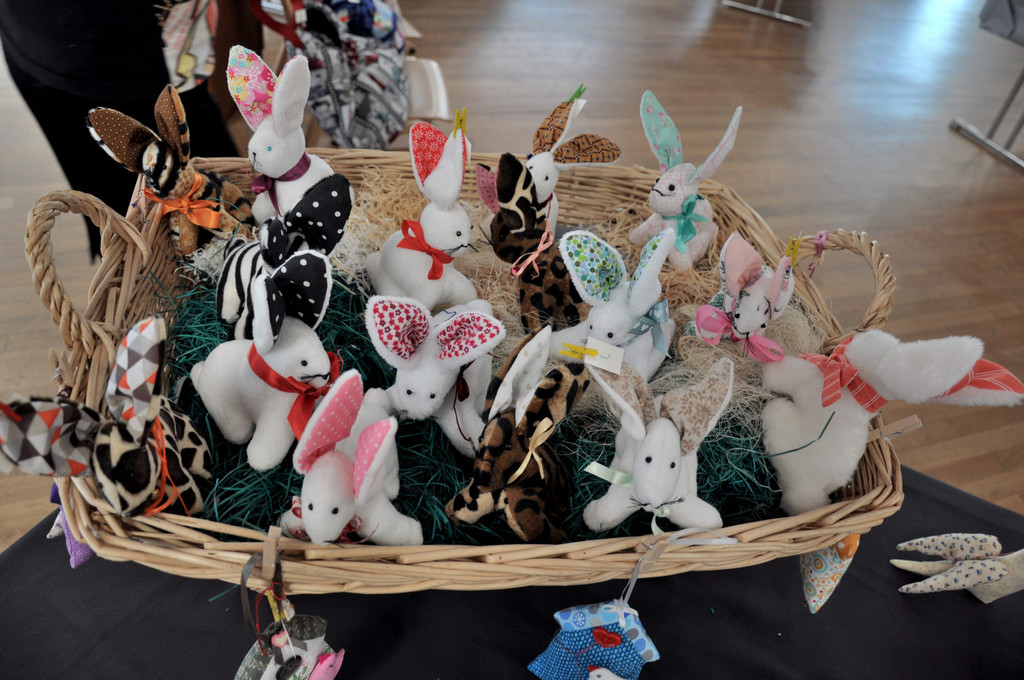 Lapins, poules, hiboux, boites, oies, souris, sacs, trousses, poupées, centre de table se cotoient pour le plaisir des yeux.